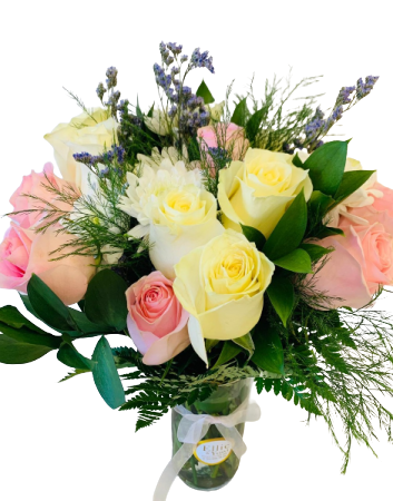 Send an Arrangement of light pink and yellow roses to light up someone’s day! These fresh roses are a beautiful expression of joy, a perfect gift to celebrate a birthday or say special occasion. Freshly picked and delivered straight to their door, these flowers are fresh and an instant memory.