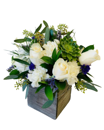 Nothing better to inspire an arrangement than nature itself! Our Lovely Day Arrangement is arranged to reflect the beauty of a beautiful day where the air is pure in the middle of nature! Pearly white roses surrounded by white carnations invoke happiness in any beholder, whether they’re displayed in a home or at an office, they’re perfect for any kind of day.